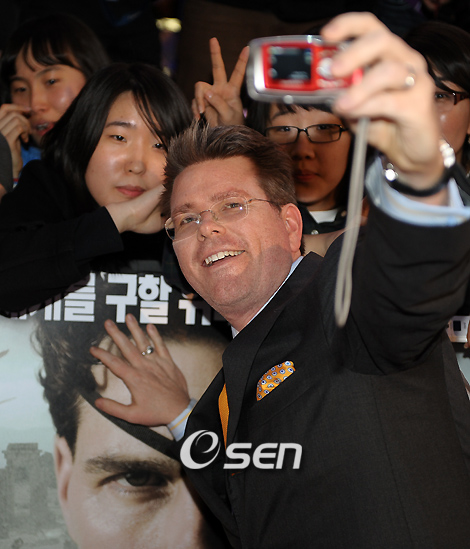 영화 ‘작전명 발키리’의 개봉을 앞두고 영화 홍보차 방한한 할리우드 톱 스타 톰 크루즈(46)가 브라이언 싱어 감독과 크리스토퍼 맥쿼리 작가와 함께 18일 서울 코엑스 메가박스에서 레드카펫 행사에 참석했다. 톰 크루즈는 1월 22일 국내 개봉을 확정 지은 영화 ‘작전명 발키리’의 주연을 맡았다. 이 영화는 2차 세계대전 당시 히틀러 암살 계획을 주도했던 이들의 실화를 바탕으로 탄생한 액션 스릴러 물이다. 톰 크루즈는 조국을 위해 버렸던 양심을 되찾고 역사의 흐름을 되돌리기 위해 죽음도 두려워하지 않는 독일 장교 슈타펜버그 대령 역을 맡았다. 크리스토퍼 맥쿼리 작가가 팬과 셀카를 찍고 있다./민경훈 기자rumi@osen.co.kr