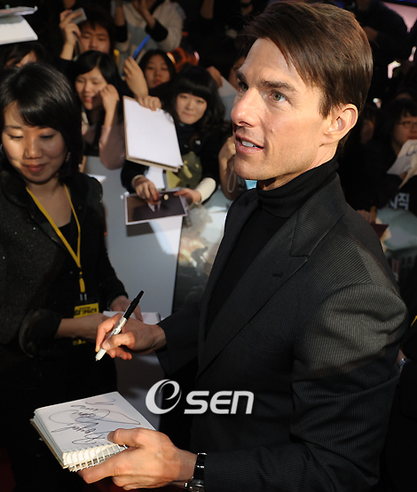 영화 ‘작전명 발키리’의 개봉을 앞두고 영화 홍보차 방한한 할리우드 톱 스타 톰 크루즈(46)가 브라이언 싱어 감독과 크리스토퍼 맥쿼리 작가와 함께 18일 서울 코엑스 메가박스에서 레드카펫 행사에 참석했다. 톰 크루즈는 1월 22일 국내 개봉을 확정 지은 영화 ‘작전명 발키리’의 주연을 맡았다. 이 영화는 2차 세계대전 당시 히틀러 암살 계획을 주도했던 이들의 실화를 바탕으로 탄생한 액션 스릴러 물이다. 톰 크루즈는 조국을 위해 버렸던 양심을 되찾고 역사의 흐름을 되돌리기 위해 죽음도 두려워하지 않는 독일 장교 슈타펜버그 대령 역을 맡았다. 톰 크루즈가 팬에게 사인을 해주고 있다./민경훈 기자rumi@osen.co.kr