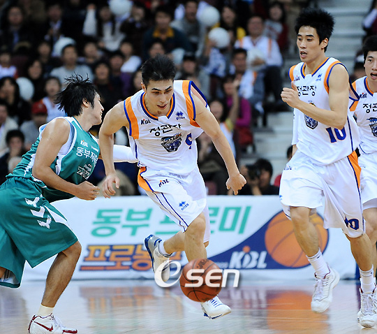 '리그 최고 포인트 가드'라는 수식어가 딱 들어맞은 경기였다. 안양 KT&G가 포인트 가드 주희정을 앞세워 선두 원주 동부를 격파했다. KT&G는 25일 안양 실내 체육관서 벌어진 2008~2009 동부 프로미 프로농구 4라운드 동부전서 30득점(3점슛 5개) 8어시스트로 공격력을 발휘한 주희정을 앞세워 86-72로 승리했다. KT&G는 이날 승리로 시즌 전적 18승 17패(25일 현재)를 기록하며 상위권 재도약을 위해 고삐를 당겼다. 반면 선두(24승 11패) 동부는 2연승 행진에 마침표를 찍었다. 무릎 부상 후 복귀한 캘빈 워너가 제 컨디션을 회복하지 못하며 1쿼터서 18-23으로 뒤진 KT&G는 주희정을 앞세워 2쿼터 전세를 뒤집는 데 성공했다. '주키드' 주희정은 2쿼터서만 3점슛 3개 포함 13득점을 올리며 팀의 리드를 이끌었다. 여기에 KT&G는 쿼터 막판 터진 김일두, 마퀸 챈들러의 연속 3점포에 힘입어 50-38로 앞선 채 2쿼터를 끝마쳤다. 3쿼터에서도 주희정의 득점력은 불을 뿜었다. 주희정은 3쿼터서도 3점포 1개를 곁들이며 10득점을 추가, KT&G의 공격을 진두지휘하는 만점 활약을 펼쳤다. 동부는 쿼터 종료 1분 14초 전과 40초 전 웬델 화이트가 풀업 점퍼 이후 던진 3점슛 2개에 힘입어 점수 차를 한 자릿수로 좁혔다는 데 위안을 삼아야 했다. 3쿼터 또한 KT&G가 67-60로 리드한 채 버저가 울렸다. 4쿼터 1분 39초 경 동부는 윤호영의 골밑슛으로 64-69를 만들며 본격적으로 추격전에 돌입했다. 김주성이 부상으로 결장한 공백을 재능있는 신인 윤호영이 대신하며 높이의 우위를 지닌 동부였던 만큼 승패의 향방은 막판까지 쉽게 점치기 힘들었다. 그러나 동부는 5점 차까지 좁혀 놓고도 시원한 '한 방'의 부재로 인해 역전의 꿈을 키우지 못했다. 그에 반해 KT&G는 챈들러-주희정의 3점포로 종료 3분 경 동부의 손길을 일찌감치 뿌리치며 값진 승리를 거뒀다. 동부는 종료 58초 전 김진호의 원거리 3점포로 72-84까지 추격했으나 시간이 너무나 부족했다. ■ 25일 전적 안양 안양 KT&G 86 (18-23 32-15 17-22 19-12) 72 원주 동부 farinelli@osen.co.kr