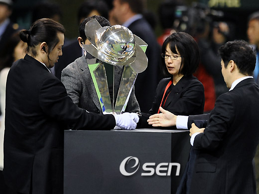 월드베이스볼클래식(WBC) 1회 대회 우승 트로피가 일본 미야자키 공항에 전시된다. 일본 은 27일 WBC 우승트로피가 사무라이 재팬을 마중나간다면서 오는 2월 15일 WBC 일본대표팀의 합숙지인 미야자키시의 미야자키 공항에 2006년 대회 우승 트로피가 전시될 예정이라고 보도했다. 이 보도에 따르면 이 트로피는 기념 메달과 사인볼 등과 함께 2월 2일부터 22일까지 20일간 일반에 공개된다. 트로피는 유리 케이스에 넣어져 공개되며 공항의 삼엄한 경계가 있을 예정이다. 그러나 지금까지 각 연고 구단의 야구장에 기념품들을 전시한 경우는 있었지만 일반인들이 공개적으로 볼 수 있도록 한 경우는 처음이다. 이 신문은 미야자키 공항을 통해 합숙에 임하는 WBC 일본 대표팀 후보들이 전시된 트로피를 보며 대회 연패 의지를 다질 것이라고 설명했다. letmeout@osen.co.kr