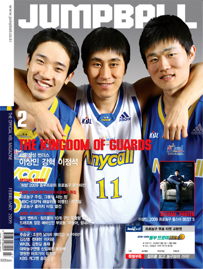 프로농구연맹(KBL) 공식지정잡지 점프볼 2월호가 28일 발행됐다. 서울 삼성의 9연승을 지휘한 이상민, 강혁, 이정석의 가드 트리오가 표지를 장식한 이번 호에는 2008-09 동부프로미 프로농구 특집이슈로 '희망' 2009 올스타전, KBL 주장들의 이야기, 10개구단의 승부처 공략방법, 국내선수 드래프트 특집 기사 등을 다뤘다. 또한 전주 KCC 상승세의 주역인 추승균과 1980년대 국가대표팀의 마당쇠 역할을 했던 임정명, WKBL 김원길 총재의 인터뷰가 실렸다. 국내선수 드래프트 참가자들의 부모들을 만나 프로농구 및 농구계 전반에 관한 생각도 정리했다. 8년 연속 올스타 팬투표 1위를 차지한 이상민과 올스타 베스트5의 브로마이드, 2009년 2월에 사용가능한 프로농구 정규경기 무료티켓 교환권 2매가 특별부록으로 제공된다. 문의전화는 (02)511-5799. 10bird@osen.co.kr