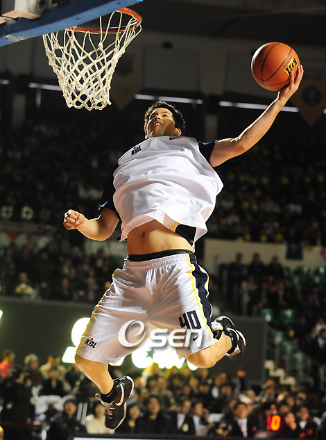 프로농구 '별들의 잔치' '희망 2009 동부 프로미 프로농구 올스타전'이 1일 잠실 학생체육관에서 벌어졌다. 전창진 감독이 이끄는 드림팀은 동부, 모비스, LG, 오리온스, KTF, 안준호 감독의 매직팀은 삼성, SK, 전자랜드, KCC, KT&G로 구성 멋진 경기를 펼쳤다. 경기 전 벌어진 덩크슛 콘테스트에서 오리온스 이동준이 호쾌한 원핸드 덩크를 구사하고 있다./학생체=손용호 기자spjj@osen.co.kr