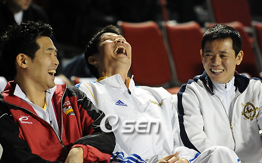 프로농구 별들의 잔치인 희망 2009 동부 프로미 올스타전이 1일 잠실학생체육관에서 벌어졌다. 전창진 감독이 이끄는 드림팀은 동부, 모비스, LG, 오리온스, KTF, 안준호 감독의 매직팀은 삼성, SK, 전자랜드, KCC, KT&G로 구성돼 멋진 경기를 펼쳤다. 경기 전 벌어진 3점 슛 컨테스트 예선을 마친 삼성 이규섭이 환하게 미소짓고 있다./잠실학생체=민경훈 기자rumi@osen.co.kr