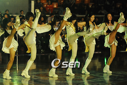 프로농구 별들의 잔치인 희망 2009 동부 프로미 올스타전이 1일 잠실학생체육관에서 벌어졌다. 전창진 감독이 이끄는 드림팀은 동부, 모비스, LG, 오리온스, KTF, 안준호 감독의 매직팀은 삼성, SK, 전자랜드, KCC, KT&G로 구성돼 멋진 경기를 펼쳤다. 경기 전 벌어진 치어리더 댄스 배틀에서 치어리더들이 멋진 공연을 펼치고 있다./잠실학생체=민경훈 기자rumi@osen.co.kr
