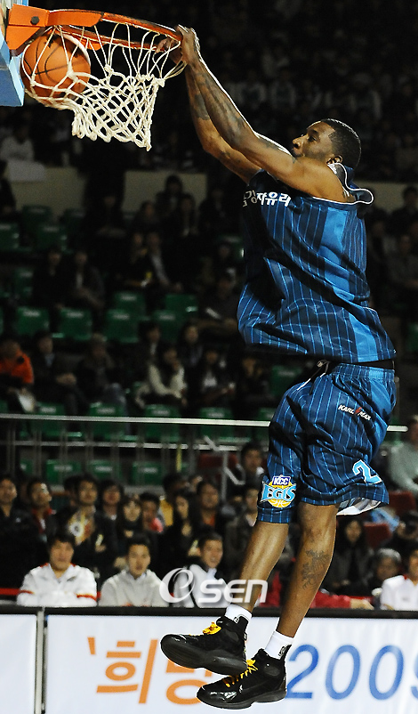 프로농구 별들의 잔치인 희망 2009 동부 프로미 올스타전이 1일 잠실학생체육관에서 벌어졌다. 전창진 감독이 이끄는 드림팀은 동부, 모비스, LG, 오리온스, KTF, 안준호 감독의 매직팀은 삼성, SK, 전자랜드, KCC, KT&G로 구성돼 멋진 경기를 펼쳤다. 경기 전 덩크슛 콘테스트 예선에서 KCC 미첼이 덩크를 내리꽂고 있다./잠실학생체=민경훈 기자rumi@osen.co.kr