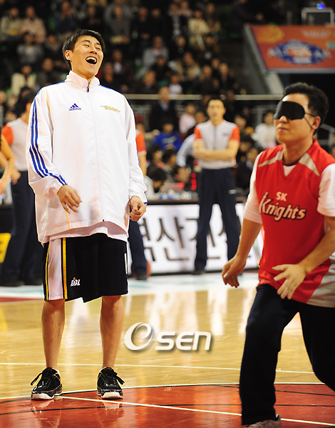 프로농구 별들의 잔치인 희망 2009 동부 프로미 올스타전이 1일 잠실학생체육관에서 벌어졌다. 전창진 감독이 이끄는 드림팀은 동부, 모비스, LG, 오리온스, KTF, 안준호 감독의 매직팀은 삼성, SK, 전자랜드, KCC, KT&G로 구성돼 멋진 경기를 펼쳤다. 안대를 하고 10개의 슛을 던져 3개를 성공시키면 500만원의 상금을 전달하는 게임에서 한 참가자가 10번째 슛에서 세번째 골을 성공시키다 이상민이 자기 일 처럼 좋아하고 있다./잠실학생체=손용호 기자spjj@osen.co.kr