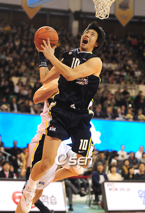 프로농구 별들의 잔치인 희망 2009 동부 프로미 올스타전이 1일 잠실학생체육관에서 벌어졌다. 전창진 감독이 이끄는 드림팀은 동부, 모비스, LG, 오리온스, KTF, 안준호 감독의 매직팀은 삼성, SK, 전자랜드, KCC, KT&G로 구성돼 멋진 경기를 펼쳤다. 1쿼터 매직팀 양희종이 드림팀 골밑에서 슛을 노리고 있다./잠실학생체=손용호 기자spjj@osen.co.kr