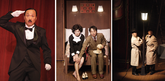 연극 ‘39계단(The 39 steps)’(제작 ㈜에이콤인터내셔날/연출 마리아 에이큰,협력연출 임영조)이 오는 2월 21일부터 동숭아트센터 동숭홀에서 앵콜 공연을 갖는다. 이 작품은 1915년 존 버컨의 소설 ‘39계단’을 연극으로 각색했다. 런던 웨스트엔드에서 2006년 초연돼 2007년 올리비에 어워즈에서 ‘New Comedy’상을 수상했던 작품이다. 2008년 뉴욕 웨스트엔드에 진출, 2008년 토니상 어워드 5개부문에 노미네이트되고 음향디자인과 조명디자인에서 수상하기도 했다. 국내에는 지난해 9월, 동숭아트센터 동숭홀에서 초연무대를 마친 연극 ‘39계단’은 독특하고 기발한 연출력 뿐만 아니라 최소한의 무대장치와 소품을 활용해 연극적인 한계를 뛰어넘는 기발함과 신선함으로 대학로 흥행작으로 주목받았다. 연극은 우연히 만난 여자로 인해 살인 누명을 쓴 한 남자의 결백을 위한 도주를 그렸다. 아나벨라와 리차드 해니의 우연한 만남에서 이야기가 시작된다. 아사벨라는 자신이 영국의 첩보요원이며 쫓기고 있다며 해니에게 도움을 요청한다. 그리고 해니 집에서 지도와 ‘39계단’이라는 암호를 남기고 살해당한다. 그녀를 도와주려던 해니는 졸지에 살인범으로 몰리고 정체불명의 조직에게 쫓긴다. 누명을 벗고 비밀을 알아내기 위해 떠난 험난한 해니의 모험이 다이나믹하게 펼쳐진다. 연극 ‘39계단’은 ‘헤드윅’의 배우 이석준과 ‘사춘기’의 박해수가 남자주인공 리차드 해니 역에 출연한다. 애너벨라, 파멜라, 마가렛 3명의 색다른 여인으로 변신하는 여주인공은 배우 정수영이 연기한다. 2009년 앵콜개막하는 연극 ‘39계단’의 제작 ㈜에이콤인터내셔날은 "라이선스 연극이 가진 고질적인 문제점들을 최대한 한국관객의 입맛에 맞도록 각색하는데 노력을 기울였다"고 밝혔다. 소극장 연극무대의 한계를 뛰어넘는 연출력과 배우들의 살아있는 마임과 연기가 돋보이는 연극 ‘39계단’은 2월 21일 대학로 동숭아트센터 동숭홀에서 공연된다. jin@osen.co.kr 연극 ‘39계단’ 초연 공연.