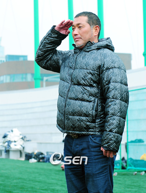 일본 프로야구의 슈퍼스타이며 한국계로 알려진 기요하라 가즈히로(42)가 한국 야구를 취재하기 위해 7일 한국을 찾았다. 2008년을 끝으로 현역에서 은퇴, 일본 지상파 민영방송인 TBS에서 월드베이스볼클래식(WBC) 평론가로 활약 중인 기요하라는 이틀간 한국에 머물면서 WBC 4강, 베이징올림픽 우승 등 최근 급성장한 한국 야구를 취재한다. 신일고 야부구를 찾은 기요하라가 선수들의 인사에 경례로 답하고 있다./윤민호 기자ymh@osen.co.kr