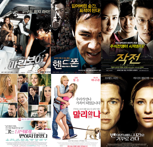 2월 그 어느 때보다 한국영화와 할리우드 영화의 접전이 치열하다. 우선 2월 5일 개봉한 한국영화 ‘마린보이’는 개봉 첫 주 박스오피스 1위를 차지하며 산뜻한 출발을 알렸다. ‘마린보이’와 같은 날 개봉한 주지훈 신민아 주연의 로맨틱 무비 ‘키친’은 9위에 머물러야 했다. 2월 12일에는 박용하 김민정 박희순이 출연하는 영화 ‘작전’이 개봉한다. 대한민국 최초로 시도되는 600억 주식 작전을 둘러싸고 벌어지는 사건을 다뤘다. 같은 날 브래드 피트와 케이트 블란쳇 주연의 ‘벤자민 버튼의 시간은 거꾸로 간다’가 개봉해 경합을 벌일 예정이다. 12일에는 영화 ‘그는 당신에게 반하지 않았다’도 개봉한다. TV 시리즈 ‘섹스 앤 더 시티’의 작가들이 쓴 동명의 연애지침서를 원작으로 한 작품이다. 제니퍼 애니스톤, 드류 베리모어, 스칼렛 요한슨, 제니퍼 코넬리, 벤 애플렉, 브래들리 쿠퍼 등이 출연하는 로맨틱 코미디. 그 다음주에는 ‘극락도 살인사건’의 김한민 감독의 신작 ‘핸드폰’이 19일에 개봉한다. 전지현 핸드폰 복제 파문과 맞물리면서 많은 화제가 됐던 작품으로 치명적인 동영상이 담긴 핸드폰을 잃어버린 한 매니저의 사투를 그린다. 엄태웅 박용우 이세나 등이 출연한다. 같은 날 제니퍼 애니스톤과 오웬 윌슨 주연의 가족 드라마 ‘말리와 나’가 개봉한다. 이들 부부 사이에 느닷없이 나타난 강아지 말리와 진정한 가족이 돼 가는 과정을 가슴 뭉클하게 그려내고 있다. 2월 26일에는 클라이브 오웬, 나오미 와츠 주연의 액션 스릴러 물 ‘인터내셔널’이 개봉한다. 전세계 190개국을 장악한 다국적 은행의 거대한 음모와 비리를 파헤치기 위한 한 남자의 끈질긴 추격을 그린다. crystal@osen.co.kr