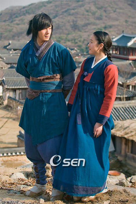 MBC 수목 드라마 '돌아온 일지매'의 촬영 현장 공개행사 및 황인뢰 감독과 주연배우 정일우, 윤진서가 참석한 기자회견이 9일 용인 MBC 드라미아에서 열렸다. 고우영 화백의 동명 만화를 원작으로 한 '돌아온 일지매'는 격변의 조선시대에 태어나자마자 매화가지 아래 버려졌던 갓난 아이가 평민들을 구하는 의적에서 나라의 운명을 수호하는 전설적인 영웅 일지매로 변모하는 이야기를 그려냈다. 촬영현장에서 정일우와 윤진서가 포토타임을 갖고 있다./용민=민경훈 기자 rumi@osen.co.kr