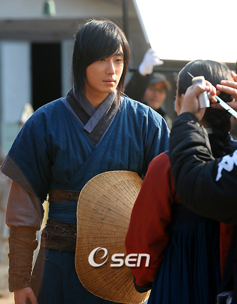 MBC 수목 드라마 '돌아온 일지매'의 촬영 현장 공개행사 및 황인뢰 감독과 주연배우 정일우, 윤진서가 참석한 기자회견이 9일 용인 MBC 드라미아에서 열렸다. 고우영 화백의 동명 만화를 원작으로 한 '돌아온 일지매'는 격변의 조선시대에 태어나자마자 매화가지 아래 버려졌던 갓난 아이가 평민들을 구하는 의적에서 나라의 운명을 수호하는 전설적인 영웅 일지매로 변모하는 이야기를 그려냈다. 윤진서가 단장하는 중에 정일우와 함께 연기 연습을 하고 있다./용민=민경훈 기자 rumi@osen.co.kr