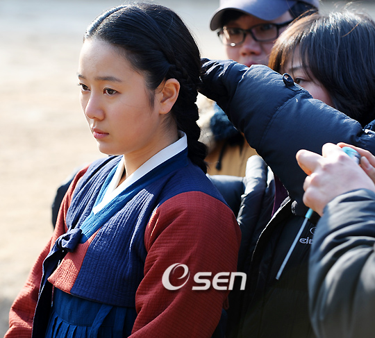 MBC 수목 드라마 '돌아온 일지매'의 촬영 현장 공개행사 및 황인뢰 감독과 주연배우 정일우, 윤진서가 참석한 기자회견이 9일 용인 MBC 드라미아에서 열렸다. 고우영 화백의 동명 만화를 원작으로 한 '돌아온 일지매'는 격변의 조선시대에 태어나자마자 매화가지 아래 버려졌던 갓난 아이가 평민들을 구하는 의적에서 나라의 운명을 수호하는 전설적인 영웅 일지매로 변모하는 이야기를 그려냈다. 윤진서가 촬영이 틈에 머리를 단장하고 있다./용민=민경훈 기자 rumi@osen.co.kr