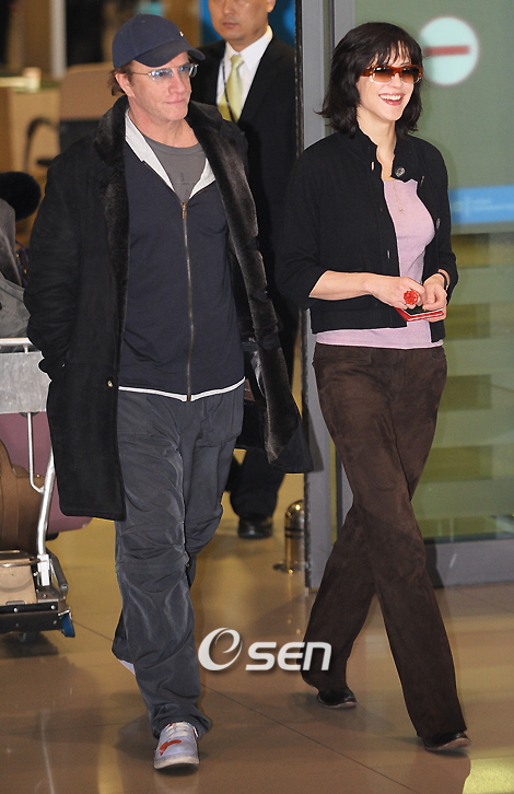 프랑스 출신 인기 여배우 소피 마르소(43)가 10일 오후 인천공항을 통해 입국했다. 명품 브랜드 쇼메(CHAUMET)의 홍보를 위해 2박 3일 일정으로 방한한 소피 마르소는 2000년 영화 ‘피델리티’ 홍보 차 방한한 이후 9년 만이다. 방한 기간 동안 기자 회견 등 공식 일정을 소화한 후에 12일 출국할 예정이다. 소피 마르소는 1980년 영화 ‘라붐’으로 데뷔했으며 ‘안나 카레리나’ ‘브레이브하트’ ‘피델리티’ ‘007 제19탄 언리미티드’ 등 다수의 영화에 출연했다. ‘트리비알’ ‘사랑한다고 말해줘’ 등의 작품은 각본과 연출을 맡아 감독으로도 활발히 활동하고 있다. 소피마르소가 배우인 크리스토퍼 램버트와 함께 입국장을 나서며 환하게 미소짓고 있다./인천공항=민경훈 기자 rumi@osen.co.kr