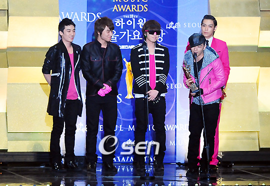 제 18회 하이원 서울가요대상이 12일 오후 강원도 태백시 고원체육관에서 열렸다. 하이원 뮤직상을 수상한 빅뱅이 수상 소감을 전하고 있다. 스포츠서울이 주최하고, 서울가요대상 조직위원회가 주관하는 제 18회 하이원 서울가요대상은 지난 한해 최고의 인기를 누린 최고 가수상인 대상을 비롯해 본상(10팀), 신인상(3팀), 성인가요상(1팀), 모바일 인기상(1팀), 한류상(1팀), 디지털음원상(1팀), 최고앨범상(1팀), 하이원뮤직상(1팀), 공연문화상(1팀), YTN스타상(1팀) 등 총 22팀이 수상한다./태백=윤민호 기자ymh@osen.co.kr