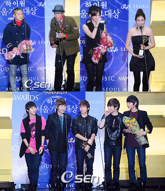 다비치, 마이티 마우스, 샤이니가 제 18회 하이원 서울가요대상에서 신인상 수상자로 선정 됐다. 12일 오후 5시 강원도 태백시 고원체육관에서 열린 하이원 서울가요대상에서 신인상 수상자로 선정된 다비치, 마이티 마우스, 샤이니는 신인상을 수상한 후 기쁨을 감추지 못했다. 다비치는 팬들과 소속사 식구들에게 수상의 영광을 돌렸고 마이티 마우스 역시 "나이가 적지 않은데 이렇게 신인상을 받게 돼 기쁘다. 김종국 사장님을 비롯해 소속사 식구들에게 모두 고맙다. 오늘은 우리가 한턱 쏘겠다"며 기쁨을 드러냈다. 샤이니는 "평생 단 한 번 밖에 받을 수 없는 상을 받게 돼 기쁘다. 소속사 식구들, 팬들에게 이 영광을 돌린다"며 감격스러워 했다. 박현빈은 성인가요상, 빅뱅은 하이원 뮤직상을 수상했다. 스포츠서울이 주최하고 서울가요대상 조직위원회가 주관하는 제 18회 하이원 서울가요대상은 지난 한해 최고의 인기를 누린 가수에게 주는 대상을 비롯해 본상(10팀), 신인상(3팀), 성인가요상(1팀), 모바일 인기상(1팀), 한류상(1팀), 디지털음원상(1팀), 최고앨범상(1팀), 하이원뮤직상(1팀), 공연문화상(1팀), YTN스타상(1팀) 등 총 11개 분야에 걸쳐 22팀이 수상의 영광을 안는다. happy@osen.co.kr 윤민호 기자ymh@osen.co.kr