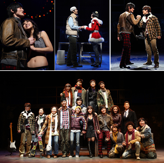 [리뷰] 뮤지컬 ‘렌트(RENT)’ 1996년 미국 오프브로드웨이에서 초연돼 큰 인기를 얻었던 ‘렌트(RENT)’가 국내에서 6번째 막을 올렸다. 에이즈, 동성애, 트랜스젠더, 마약 등 어두운 사회 속, 어두운 소재들로 화려한 뮤지컬을 올리기는 쉽지 않았을 것이다. 하지만 6번째 ‘렌트’의 무대는 박칼린 음악감독의 음색이 돋보이는 뮤지컬 넘버와 오랜 ‘렌트’의 연출가 김재성의 안정적인 지휘아래 변함없는 감동을 전했다. ‘렌트’는 기약 없이 에이즈로 죽어가는 젊은 예술가들을 소재로 어두운 현실 속에 한줄기 꿈과 메시지를 던지고 있다. 죽기 전에 명곡을 남기고 싶어 하는 로커 로저와 마약에 중독된 댄서 미미, 거리의 드러머이자 트랜스젠더인 엔젤과 에이즈에 걸린 컴퓨터 천재 콜린 등 개성 있는 캐릭터와 이들이 보여주는 희망과 사랑의 감동은 관객들에게 찡한 감동을 안겼다. 2000년 로저 역의 남경주와 미미 역의 최정원을 시작으로 조승우 전수경 주원성 소냐 정선아 성기윤 등 당대 최고의 뮤지컬 스타들이 거쳐간 뮤지컬 ‘렌트’는 2009년 새로운 신인 배우 오디션을 준비하며 신예발굴과 동시에 진보하는 ‘렌트’를 기대케 했다. 700명이 넘는 지원자가 몰리는 치열한 경쟁 속에서 오디션이 진행됐고 그렇게 선발된 신인 배우들은 공연 개막부터 이목을 집중시켰다. 하지만 2009년 ‘렌트’의 신인들은 아직은 무대가 낯선 모양이다. 캐릭터의 개성을 드러내지 못했고 앙상블에서는 조화를 이루지 못했다. 로커 로저 역을 맡은 유승현은 높은 음역을 소화해내기 어려웠고 죽음과 사랑 앞에 나약해지는 자신의 모습을 고통 속에 표현하지 못했다. 뮤지컬 배우 고명석과 함께 미미 역에 더블캐스팅 된 조민아는 파워풀하고 열정적인 섹시한 미미를 연기했지만 음역의 높낮이를 조절하지 못하고 불안정해 아쉬움을 남겼다. 다행스럽게도 콜린 역을 연기한 최재림과 엔젤 역의 이지송의 동성애자 연기는 나무랄 데가 없다. ‘렌트’의 무대에서 호평 받은 최재림은 신인답지 않은 굵직한 목소리로 이지송의 목소리와 제법 잘 어울리는 무대를 만들어 냈다. 덕분에 이들의 동성애는 거부감 없이 표현될 수 있었다. 최재림은 뮤지컬 무대가 처음이라는 사실이 믿기지 않을 만큼 자유자재로 목소리 톤을 조절하며 안정적인 노래를 구사했다. 뮤지컬배우들의 스타가 되기 위한 발판이 되기도 했던 흥행뮤지컬 ‘렌트’는 탄탄한 스토리에 안정적인 음악과 안무, 연출의 삼박자를 모두 갖춘 작품으로 호평을 받아왔다. 하지만 기대를 모았던 신인배우들의 어쩔 수 없는 한계 앞에서는 다소의 주춤거림이 예상된다. jin@osen.co.kr 뮤지컬 ‘렌트’.