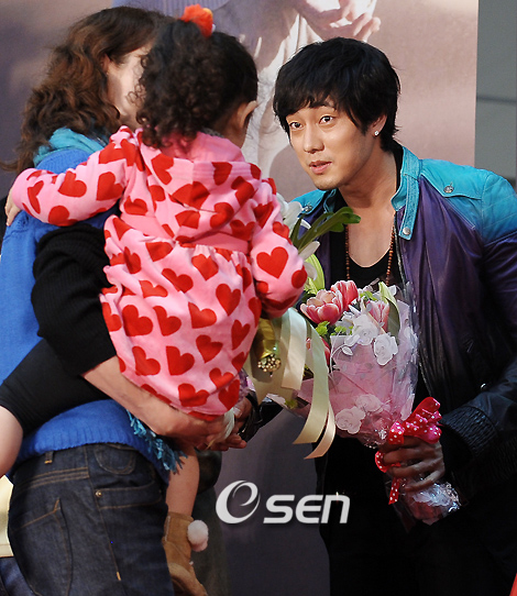 SBS 새 수목 드라마 ‘카인과 아벨’(박계옥 극본, 김형식 연출, 18일 첫 방송 예정) 제작발표회가 13일 오후 충청북도 청주공항에서 제작진과 배우 신현준 소지섭 채정안 한지민 한다민 유주희가 참석한 가운데 열렸다. 호화 캐스팅과 더불어 ‘외과의사 봉달희’의 김형식 PD가 연출을 맡아 큰 관심을 모으고 있는 이 작품은 75억 규모의 20부작으로 진행될 예정이며 외과의사 초인(소지섭)이 형 선우(신현준)와 대립하며 서연(채정안)과 영지(한지민) 사이에서 사랑과 갈등을 그리는 내용을 담고 있다. 소지섭이 무대 위에서 팬으로부터 꽃다발을 받고 악수를 나누고 있다./청주=민경훈 기자 rumi@osen.co.kr
