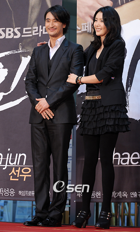 SBS 새 수목 드라마 ‘카인과 아벨’(박계옥 극본, 김형식 연출, 18일 첫 방송 예정) 제작발표회가 13일 오후 충청북도 청주공항에서 제작진과 배우 신현준 소지섭 채정안 한지민 한다민 유주희가 참석한 가운데 열렸다. 호화 캐스팅과 더불어 ‘외과의사 봉달희’의 김형식 PD가 연출을 맡아 큰 관심을 모으고 있는 이 작품은 75억 규모의 20부작으로 진행될 예정이며 외과의사 초인(소지섭)이 형 선우(신현준)와 대립하며 서연(채정안)과 영지(한지민) 사이에서 사랑과 갈등을 그리는 내용을 담고 있다. 포토타임 중 채정안이 신현준의 어깨를 두드리고 있다. /청주=민경훈 기자 rumi@osen.co.kr