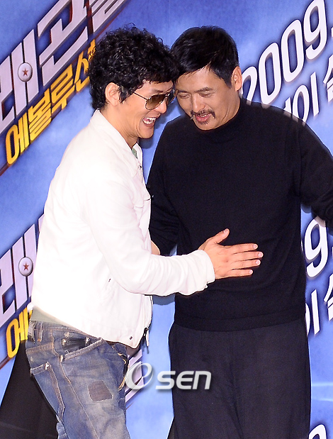 영화 '드래곤볼 에볼루션'의 공식 기자회견이 18일 오후 서울 중구 신라 호텔에서 열렸다. 이 자리에는 유명 중국 배우 주윤발(54)과 god 출신 배우 박준형(40)이 다른 '드래곤볼 에볼루션'의 주연배우들 및 제임스 왕 감독과 함께 참석했다. 오는 3월 12일 개봉예정인 영화 '드래곤볼 에볼루션' 프로모션을 위해 15년 만에 내한한 주윤발은 '무천도사' 역을 연기했고 박준형은 '야무치' 역을 맡았다. 또한 손오공 역은 영화 '우주전쟁'에서 톰 크루즈의 아들 '로비'역으로 출연했던 저스틴 채트윈이 맡았고, 영화 '투모로우' '포세이돈' '오페라의 유령' 등으로 잘 알려진 에미 로섬이 부루마 역을 연기했다. 한인 2세 배우인 제이미 정은 치치 역을 맡았고 제임스 마스터스는 피콜로 역을 연기했다. 기자회견을 마치고 박준형이 퇴장하면서 주윤발의 배를 만지고 있다./민경훈 기자 rumi@osen.co.kr