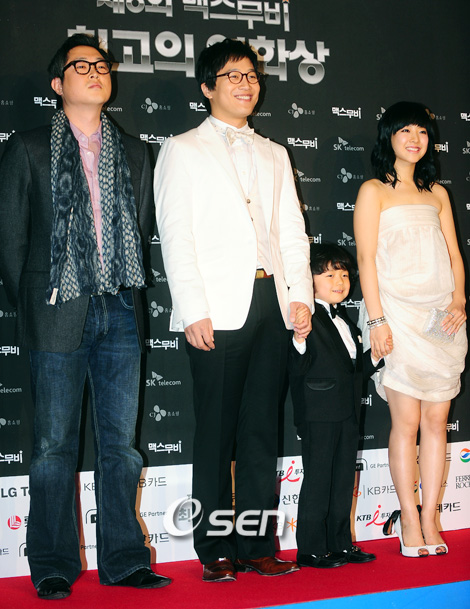제6회 맥스무비 최고의 영화상 시상식이 18일 오후 서울 용산 CGV에서 열렸다. 시상식 전 강형철 감독, 차태현 왕석현 박보영이 포토타임을 갖고 있다. '과속스캔들'의 차태현이 최고 남자 주연배우상을 수상했으며 '고고70'의 신민아가 여자 주연배우상을 수상했다. '과속스캔들'의 박보영이 최고의 신인 배우상을 수상했으며, '추격자'의 나홍진 감독이 최고의 감독상과 작품상의 영예를 동시에 얻었다. 배우 김해숙이 영화 '무방비도시'로 여자 조연배우상을 받았으며 '다크나이트'의 고 히스레저는 남자 조연배우상을 수상했다./윤민호 기자ymh@osen.co.kr