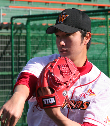 "역시 10승 투수더라". 우완 투수 제춘모(27)가 SK의 올 시즌 중간 불펜진의 한 자리를 확실히 꿰찼다. 제춘모는 18일 일본 오키나와 우라소에 구장에서 열린 일본프로야구 야쿠르트와의 연습경기에서 팀의 세 번째 투수로 등판, 1⅔이닝을 무실점으로 완벽하게 막아냈다. 5명의 타자를 상대하면서 삼진은 1개를 빼앗아냈고 나머지 4명의 타자를 모두 땅볼로 유도해냈다. SK 김성근 감독은 경기 후 OSEN과의 통화에서 제춘모에 대한 칭찬을 아끼지 않았다. "오늘 수훈 선수는 제춘모였다"는 김 감독은 "구위도 좋았고 수비도 훨씬 나아졌다"며 "최고 구속이 143km가 나왔다. 일단 중간 투수로는 충분하다. 합격이다. 역시 10승 투수다웠다"고 평했다. 경쟁을 끝까지 유도하지만 한 번 믿음을 준 선수에 대한 신임은 확고한 김 감독인 만큼 지난해 병역을 마친 제춘모에 대한 만족도가 어느 정도인지 알 수 있다. SK 전력분석팀 김정준 과장 역시 "오늘 제춘모가 가장 돋보였다. 대졸 신인 박현준(1⅔이닝 무실점)도 잘했지만 역시 아마추어 티가 난 반면 제춘모는 경기를 운영할 줄 알았다"며 "구위는 전성기 때보다 오히려 나은 것 같고 오랫만의 등판이었을텐데 마운드에서의 움직임이 차분해 보였다"고 거들었다. 제춘모로서는 일단 지난 2005년 두 경기 등판 후 4년만에 다시 프로야구 1군 마운드 복귀가 결정됐다. 더불어 마음 놓고 선발 경쟁에 뛰어들 수 있는 바탕이 마련됐다. 광주 동성고 졸업 후 지난 2002년에 입단한 제춘모는 첫 해 9승(7패)을 올린데 이어 2003년에는 10승(6패 5홀드)을 기록했다. 타선은 16안타를 몰아쳤다. 1회 2점을 뽑은 SK는 2-1로 앞선 3회 대거 6득점하며 승기를 굳혔다. 5회에는 통산 2홈런에 불과하던 조동화가 쐐기 3점포를 쏘아올렸다. 이로써 SK는 이번 스프링캠프 기간 동안 가진 다른 프로팀과의 첫 연습경기를 성공적으로 마쳤다. 이날 SK 마운드는 두 번째 투수로 나온 신인 여건욱이 아웃카운트 하나도 잡지 못한 채 4실점한 것을 빼고는 나무랄 것이 없었다. 여건욱도 홈런을 맞으며 흔들려 신인티를 냈을 뿐 경험이 쌓이면 괜찮다는 반응이다. 이날 선발로 나선 좌완 크리스 니코스키는 3이닝 동안 2피안타 1실점했다. 1회 실점했지만 2회와 3회를 다양한 변화구를 섞으며 완벽한 투구를 선보였다. 특히 좌타자를 상대로 한 투구시 팔 각도의 변화가 인상적이었다는 평가를 받았다. 김 감독은 니코스키에 대해 "저번보다는 나아졌다"며 얼마전 "만족스럽지 못하다"는 차가운 평가에서 한 발 물러난 모습을 보였다. 여건욱에 이어 마운드에 오른 좌완 가득염(40)도 1⅓이닝 동안 4타자를 깔끔하게 처리했고 정우람도 1⅓이닝을 완벽하게 틀어막았다. 마지막을 장식한 박현준은 1⅓이닝을 가볍게 처리했다. 또 김 감독은 타자에 대한 칭찬도 거들었다. "박정환, 안경현, 김용우도 잘하더라"며 "이호준, 박재홍, 김재현 등 베테랑 타자들도 대타도 나왔다. 이제 시작이다"고 밝은 목소리를 내보였다. 이날 경기전 SK 덕아웃에는 야쿠르트 소속의 투수 임창용과 이혜천이 김 감독을 찾아 인사했다. 김 감독은 "마침 내 방에 손님이 와 있어 간단한 인사만 하고 헤어졌다"면서 "임창용이 예전에 비해 많이 마른 것 같더라"면서 "WBC 관련 이야기는 주고 받지 못했고 허리 상태도 물어보지 못했다"고 아쉬워했다. 한편 SK는 19일 나고에서 역시 일본프로야구 니혼햄과 대결을 갖는다. 선발은 마이크 존슨을 내세울 예정이다. letmeout@osen.co.kr 제춘모-SK 와이번스 제공.