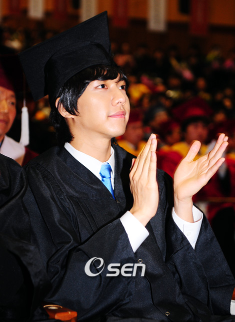 가수 이승기가 빛나는 대학 졸업장을 받았다. 20일 오전 서울 동국대학교 '2009 봄 학위 수여식'에 참석한 그는 모교 이미지를 높이는 데 이바지한 공로로 '총장 공로상'을 수상했다. 국제통상학과 2005년 학번인 이승기는 방송활동과 학업을 병행하며 휴학 없이 4년 만에 대학을 마쳤다. 학위 수여식에 참석한 이승기가 박수 치고 있다./윤민호 기자ymh@osen.co.kr