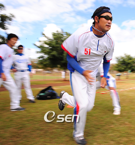 "원래 바깥쪽 공도 지난해 많이 던졌으니까요". '봉타나' 봉중근(29. LG 트윈스)이 두번째 맞는 월드 베이스볼 클래식(WBC)에 대한 각오를 밝혔다. 23일(한국 시간) 하와이 호놀룰루에 위치한 센트럴 오아후 리저널 파크서 투수들 중 최고의 컨디션을 발휘 중인 봉중근은 "계투로도 제 역할을 할 수 있도록 노력할 것이다"라고 이야기했다. "아직 LG서 마무리를 맡을 것인지는 결정되지 않았다"라고 이야기 한 봉중근은 지난해 말 인터뷰서 '180이닝 이상 투구하고 싶다'라며 '이닝 이터'에 대한 바람을 이야기 한 바 있다. 그러나 LG는 확실한 마무리 부재로 인해 봉중근을 선발 투수가 아닌 마무리 투수로도 고려 중이다. 봉중근은 그에 대해 "팀이 어려운 상황에서 지시하는 바에 따라 뛰는 것이 프로다. '이닝 이터'라는 목표는 가지고 있지만 지난 시즌 팀이 최하위에 그친 상황서 내 의견만 고수할 수는 없는 법이다"라며 "일단 대표팀서는 계투로 정해진 만큼 그에 대해 매진하고 노력할 것이다"라며 굳은 다짐을 내비췄다. 봉중근은 지난 19일 한화와의 연습 경기서 2이닝 1피안타 무실점을 기록하며 탁월한 구위를 다시 한 번 보여주었다. 지난 시즌 바깥쪽 공으로 유리한 카운트를 이끈 뒤 결정구로 몸쪽 직구를 던지는 모습을 보여주며 타자들을 제압해 나갔던 봉중근은 국내 무대와는 다른 스트라이크 존에 대해 이야기했다. "스트라이크 존에 대해 구체적으로 이야기할 순 없지만 분명 국내 리그와는 다를 것이다. 힘 좋은 타자들도 많이 출장하는 만큼 몸쪽 공을 구사하는 데도 제약이 있을 텐데 WBC서는 몸쪽 공보다는 '볼 같은 스트라이크'성 바깥쪽 공이 유효할 것 같다. 지난 시즌 많이 던졌던 만큼 그에 대해서도 자신있다" 팀이 원하는 위치에서 제 역할을 하겠다는 다짐을 밝힌 봉중근. 지난 시즌 승운이 없는 와중에도 묵묵히 제 역할을 하며 팬들의 사랑을 받았던 봉중근이 자신의 한국 복귀에도 큰 영향을 미쳤던 WBC서 제 기량을 떨칠 수 있을 지 팬들의 기대가 점점 커지고 있다. farinelli@osen.co.kr WBC 야구 대표팀이 23일(한국시간) 하와이의 센트럴 오아후 리저널 파크에서 전지훈련 여섯 번째 훈련을 가졌다. 봉중근이 단거리 전력질주 훈련을 하고 있다./호놀룰루=손용호 기자spjj@osen.co.kr