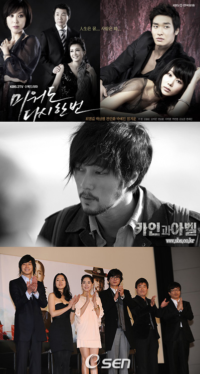 지상파 3사 수목극이 1강 2중 체제를 보이고 있다. 26일 시청률 조사기관 AGB닐슨미디어리서치의 집계 결과에 따르면 25일 방송된 SBS 수목드라마 ‘카인과 아벨’(박계옥 극본, 김형식 연출)과 MBC '돌아온 일지매'(김광식 도영명 극본, 황인뢰 김수영 연출)는 전국 시청률 11.8%로 동일한 수치를 기록했다. 지난 18일 첫 방송에서 13.7%로 출발한 ‘카인과 아벨’은 19일 2회 방송분에서 2%포인트 하락한 11.7%를 기록하며 11.6%를 보인 ‘돌아온 일지매’를 0.1%포인트 차로 누르고 수목극 2위에 오른 바 있다. 동시간대 방송된 KBS 2TV ‘미워도 다시 한 번’(조희 극본, 김종창 연출)은 19일 방송분이 기록한 18.0%에서 소폭 상승한 18.2%를 기록하며 지상파 3사 수목극 선두 자리에 올라섰다. yu@osen.co.kr