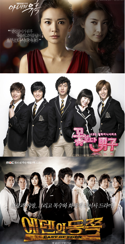 SBS ‘아내의 유혹’, KBS 2TV ‘꽃보다 남자’ 등 각 방송사를 대표하는 드라마의 성적표는 어떨까? AGB닐슨 미디어 리서치가 제공한 주간 시청률(2월 23일~3월 1일)을 살펴보면 전체 드라마 중 시청률 1위를 차지한 드라마는 SBS ‘아내의 유혹’(35.5%)으로 매회 ‘막장이다’ ‘시트콤같다’는 비난을 사고 있음에도 굳건히 1위 자리를 지키고 있다. 2위는 SBS ‘유리의 성’(29.8%), 3위는 KBS 2TV ‘꽃보다 남자’(29.6%)로 ‘유리의 성’이 1일 종영함에 따라 KBS의 대표 드라마인 ‘꽃남’이 전체 2위로 등극할 것으로 예상된다. 4위는 KBS 2TV 주말연속극 ‘내사랑 금지옥엽’(29.0%), 5위는 ‘가문의 영광’(28.1%)’으로 대부분 30%에 가까운 시청률을 보이고 있다. 반면 과거 ‘드라마 왕국’으로 불리며 시청률 상위권을 점령했던 MBC 드라마는 전체 시청률 5위안에 들지 못했고, 그나마 ‘에덴의 동쪽’이 25.2%로 주간극 상위권에 들었지만 다음 주 종영을 앞두고 있어 대표 드라마의 탄생이 절실한 순간이다. MBC는 지난 주 일일시트콤 ‘그분이 오신다’의 종영을 시작으로 오는 8일 주말연속극 ‘내 인생의 황금기’와 10일 ‘에덴의 동쪽’의 종영을 앞두고 있다. 2일 새 일일시트콤 ‘태희혜교지현이’의 첫 방송을 시작으로 새 주말연속극 ‘잘했군 잘했어’, 새 월화드라마 ‘내조의 여왕’ 등 새로운 반전을 노리고 있는 MBC의 대표 드라마는 과연 어떤 작품이 될 지 관심이 모아지고 있다. ricky337@osen.co.kr
