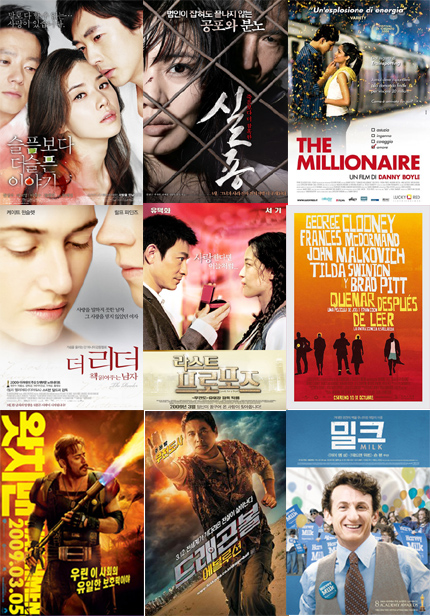 3월 극장가에 한국영화는 2편 개봉되는데 반해 외화가 대거 개봉해 눈길을 끈다. 3월에 개봉하는 한국영화는 12일에 개봉하는 정통 멜로 영화 ‘슬픔보다 더 슬픈 이야기’와 19일에 개봉하는 스릴러 ‘실종’이다. ‘슬픔보다 더 슬픈 이야기’는 권상우 이보영 이범수 등이 출연해 관객들의 눈물샘을 자극하겠다는 의지이며 ‘실종’은 문성근과 추자현의 한판 대접전을 예고한다. 이후부터 공포, 로맨스, 액션 블록버스터 등 다양한 장르의 외화가 포진하고 있다. 로맨틱 멜로 장르로 유덕화 서기의 ‘라스트 프러포즈’(5일 개봉), 우마 서먼과 콜린 퍼스 주연의 ‘뉴욕은 언제나 사랑 중’(12일 개봉) 등이 있다. 골든 글로브와 아카데미 시상식에서 주목 받은 영화들도 대거 개봉을 앞두고 있다. 아카데미 최다 부분 수상한 ‘슬럼독 밀리어네어’(19일 개봉)을 비롯해서 ‘더 레슬러’(5일 개봉) ‘엘레지’(19일 개봉) ‘더 리더’(26일 개봉) ‘밀크’(26일 개봉) 등이 줄줄이 개봉한다. 할리우드 액션 블록버스터 영화도 그 포문을 연다. 그래픽 노블을 원작으로 한 ‘왓치맨’(5일 개봉)과 1984년 제작된 토리야마 아키라의 을 원작으로 한 실사 영화 ‘드래곤볼 에볼루션’(12일 개봉)이 기대를 모으고 있다. 여기에 스마트폰을 소재로 한 ‘기프트’(26일 개봉)도 대기하고 있다. 할리우드 공포 영화도 개봉을 앞두고 있다. 무려 11편의 시리즈를 이어온 공포의 전설 영화 ‘13일의 금요일’(13일 개봉)과 ‘블러디 발렌타인 3D’ 등이다. 범죄 코미디 장르의 ‘번 애프터 리딩’도 3월 26일 개봉한다. 브래드 피트, 조지 클루니, 존 말코비치 등이 출연한다. crystal@osen.co.kr