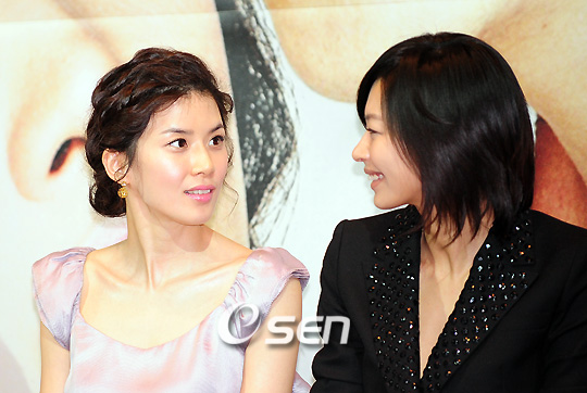 권상우 이범수 이보영이 주연한 영화 '슬픔보다 더 슬픈이야기'(원태연 감독) 시사회 및 기자간담회가 2일 오후 서울 강남구 코엑스 메가 박스에서 열렸다. 최고의 멜로 배우들의 열연으로 완성된 '슬픔보다 더 슬픈 이야기'는 벙어리 사랑, 눈먼 사랑, 외톨이 사랑 등 서로 다른 사랑을 하는 세 사람의 아픈 사랑을 그린 정통 멜로 영화로 3월 12일 개봉 예정이다. 기자간담회에 참석한 이보영과 정애연이 대화를 나누고 있다./윤민호 기자ymh@osen.co.kr