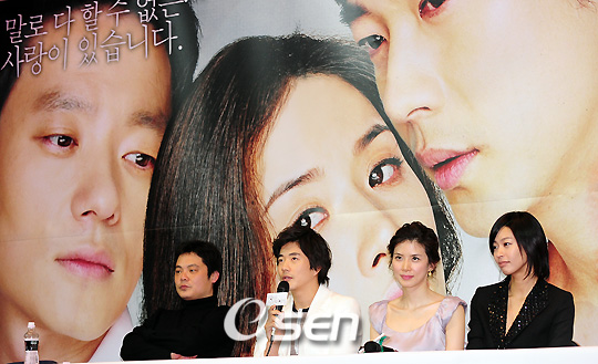 권상우 이범수 이보영이 주연한 영화 '슬픔보다 더 슬픈이야기'(원태연 감독) 시사회 및 기자간담회가 2일 오후 서울 강남구 코엑스 메가박스에서 열렸다. 최고의 멜로 배우들의 열연으로 완성된 '슬픔보다 더 슬픈 이야기'는 벙어리 사랑, 눈먼 사랑, 외톨이 사랑 등 서로 다른 사랑을 하는 세 사람의 아픈 사랑을 그린 정통 멜로 영화로 3월 11일 개봉 예정이다. 원태연 감독, 권상우 이보영 정애연이 기자간담회를 갖고 있다./윤민호 기자ymh@osen.co.kr