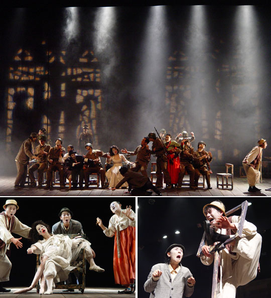 2007년 11월 타데우즈 칸토르(Tadeusz Kantor)의 작품 ‘빌로폴 빌로폴’을 우리 역사의 무대로 옮겨 국내에 처음 선보인 ‘두드리두드리’가 ‘동녀의 봄’(연출 채승훈)이라는 제목으로 다시 무대에 오른다. ‘동녀의 봄’은 2008년 5월에 서울연극제 공식참가작으로 참가해 ‘작품상’과 ‘신인연기상’을 수상했고 그 해 6월에는 세계적인 연극제인 ‘루마니아 바벨 국제 연극제’에 공식 초청되기도 했다. 연출가 채승훈은 이 작품을 통해 ‘죽음의 언어’를 실험하고자 했다. 연출가가 말하는 ‘죽음의 언어’란 배우들의 비틀어진 몸 동작과 소리를 통해 억눌린 삶을 살았던 영혼들에게 다가가는 언어를 말한다. 연극에 펼쳐지는 표현들은 역사나 역사의 주체에 대한 비판이자 저항의식의 표현들이다. 무대에는 탁자와 의자들이 난잡하게 흩어져있다. 무대 위에 오직 ‘나’만이 멀쩡한 모양새를 하고 있다. 연극은 무대를 통해 ‘나’의 기억을 드러낸다. ‘나’는 어릴 적 가족들을 기억하고 아버지와 어머니의 결혼식으로부터 어머니의 일생, 가족의 비극적 상관관계 등을 기억해간다. 작품에서 ‘나’의 기억 속 어머니는 민족의 희생자를 대변하고 가족은 이기적인 민중을 그려낸다. ‘나’의 기억으로 표현되는 무대는 6.25전쟁과 군사독재, 정치사회적 억압과 수탈, 굴욕과 기만, 배신 등을 담아낸다. 연극의 핵심은 전쟁의 처참한 기억, 대량학살과 그에 따른 인간성 상실을 통해 민중의 고통과 비극적 역사의 계속되는 악순환, 폐허와 주검들, 고통 당하고 있는 사람들의 이야기로 정의된다. 이 작품은 20세기 현대 예술의 조건을 형성했다고 추앙받는 폴란드의 연출가 타데우스 카토르의 작품을 통해 폴라드 역사와 우리나라 역사의 유사점을 착안해 번안된 작품이다. 칸토르의 ‘빌로폴 빌로폴’을 우리 정서에 맞게 우리 역사를 배경으로 각색해 지난 사건들을 재연한다. 박종상, 심철종, 하경화, 박정근, 소희정, 김태성, 우영민 등의 배우가 열연하는 연극 ‘동녀의 봄’은 대학로 복합문화 공간 아르코시티극장의 Pre-open 기념공연으로 선정돼 3월 11일부터 3월 22일까지 아르코시티극장 대극장에서 공연된다. jin@osen.co.kr 연극 ‘동녀의 봄’.