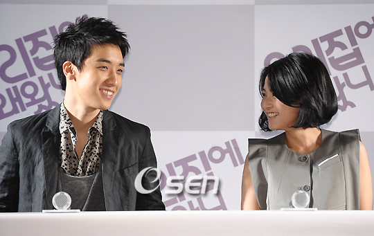 영화 '우리 집에 왜 왔니' 제작 보고회가 5일 서울 광진구 자양동 건대입구 롯데시네마에서 열렸다. 이 자리에는 황수아 감독과 배우 박희순 강혜정 승리가 참석했다. 이 영화는 평범하지 않는 삶 속에서 진정한 사랑의 의미를 찾아간다는 줄거리로 인기 가요그룹 '빅뱅'의 멤버인 승리의 영화 데뷔작으로 큰 화제를 모으고 있다. 기자회견 중 승리와 강혜정이 다정하게 얘기를 나누고 있다./민경훈 기자 rumi@osen.co.kr