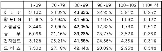 [농구토토] 국내 농구팬들은 오는7일 오후에 벌어지는 2008-2009프로농구 인천 전자랜드-울산 모비스전에서 양팀의 치열한 박빙승부를 전망했다. 스포츠토토 공식 온라인 발매 사이트인 베트맨(www.betman.co.kr)은 오는 7일 오후 3시부터 펼쳐지는 전주 KCC-창원 LG, 서울 삼성-원주 동부, 인천 전자랜드-울산 모비스전 등 국내 프로농구 3경기를 대상으로 한 농구토토 스페셜 15회차 투표율 중간집계 결과 후반기 돌풍의 팀 전자랜드와 올 시즌 이변의 주인공 모비스가 모두 80점대를 기록해 승부를 알 수 없는 접전을 펼칠 것으로 전망했다고 밝혔다. 특히 전자랜드-KCC전 경우 전자랜드(80~89점대 41.68%)와 KCC(80~89점대 42.14%)의 1순위 득점대 투표율 차이가 1%도 되지 않을 정도로 비슷하게 집계돼 회차 최고의 박빙승부를 예고했다. 1경기 KCC-LG전과 2경기 삼성-동부전 역시 각 팀이 모두 80점대를 기록할 것이라는 예상이 최다 투표를 차지해 시즌 막판 플레이오프를 향한 각 팀들의 치열한 승부가 펼쳐질 것으로 전망한 참가자가 많은 것으로 나타났다. 스포츠토토 관계자는 "농구팬들은 올 시즌 돌풍의 팀끼리 맞붙는 전자랜드-모비스전을 비롯해 주말 3경기에서 모두 같은 점수대 접전이 펼쳐질 것으로 전망했다"며 "특히 이번 달은 플레이오프 진출이 걸려있는 중요한 시기인 만큼 각 팀들의 사정에 따른 맞춤형 분석이 필요할 것"이라고 말했다. 한편 이번 농구토토 스페셜 15회차 게임은 경기시작 10분 전인 7일 오후 2시 50분에 발매가 마감된다. '즐거운 스포츠, 즐거운 토토'(http://www.betman.co.kr)