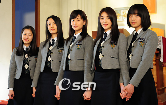 손은서 장경아 오연서 송민정 유신애가 출연하는 영화 '여고괴담 다섯 번째 이야기-동반자살'(이종용 감독) 현장공개 및 기자간담회가 9일 오후 전라북도 전주시 전주영화종합촬영소에서 열렸다. 죽을 때도 함께 하자는 피의 우정을 맹세한 친구들 중 한 명이 먼저 자살을 한 후 남겨진 친구들에게 찾아온 의문의 죽음과 공포를 그린 영화이다. 유신애 장경아 오연서 손은서 송민정이 포토타임을 갖고 있다./전주=윤민호 기자ymh@osen.co.kr