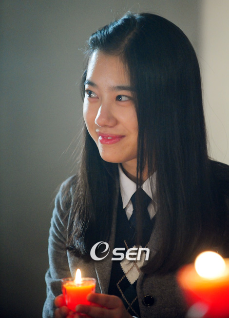 손은서 장경아 오연서 송민정 유신애가 출연하는 영화 '여고괴담 다섯 번째 이야기-동반자살'(이종용 감독) 현장공개 및 기자간담회가 9일 오후 전라북도 전주시 전주영화종합촬영소에서 열렸다. 죽을 때도 함께 하자는 피의 우정을 맹세한 친구들 중 한 명이 먼저 자살을 한 후 남겨진 친구들에게 찾아온 의문의 죽음과 공포를 그린 영화이다. 유신애가 리허설 중 미소를 짓고 있다./전주=윤민호 기자ymh@osen.co.kr