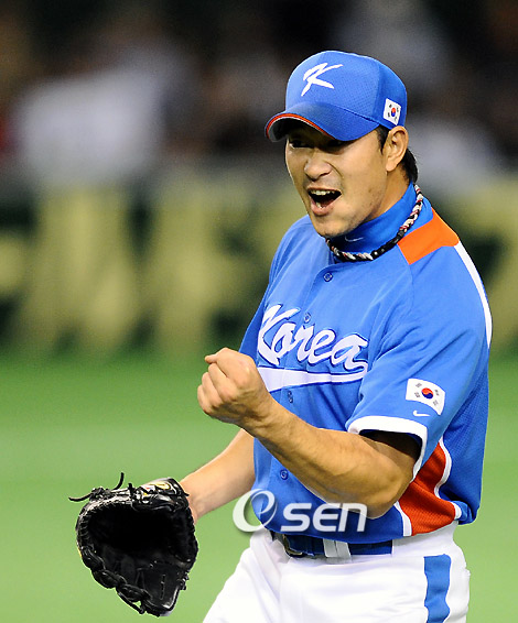 '최고'라는 수식어가 알맞은 빼어난 활약이었다. '봉타나' 봉중근(29. LG)이 일본을 상대로 확실한 쾌투를 펼치며 승리 투수가 되었다. 봉중근은 9일 도쿄 돔서 벌어진 월드 베이스볼 클래식(WBC) 1라운드 1,2위 결정전 일본과의 경기에 선발 등판, 5⅓이닝 동안 69개의 공을 던지며 사사구 없이 3피안타(탈삼진 2개) 무실점으로 깔끔한 활약을 펼치며 1-0 승리를 이끌었다. 봉중근은 이날 69구 투구로 2라운드가 펼쳐질 오는 13일에나 등판이 가능해졌으나 자존심이 걸린 경기서 쾌투를 펼치며 야구 팬들을 흡족하게 했다. 봉중근의 1회는 깔끔했다. 톱타자 스즈키 이치로(36. 시애틀)에게 3구 째 직구(139km)를 던져 2루 땅볼로 아웃 시킨 봉중근은 후속 타자 나카지마 히로유키(26. 세이부)에게는 2구 째 서클 체인지업을 던졌다. 이는 중견수 이종욱(29. 두산)의 호수비로 인해 범타 처리되었으며 3번 타자 아오키 노리치카(27. 야쿠르트)에게는 낮은 직구(139km)를 던져 1루수 땅볼로 솎아냈다. 2회서 봉중근은 자신의 구위를 확실하게 뽐내며 2개의 탈삼진을 획득했다. 특히 상대 5번 타자 이나바 아쓰노리(37. 니혼햄)을 상대할 때는 4구 째 높은 직구(147km)로 상대의 방망이를 유인, 삼진을 잡아내는 위풍당당한 모습을 보였다. 봉중근은 3회 1사 후 조지마 겐지(33. 시애틀)에게 낮은 서클 체인지업(122km)을 통타 당하며 좌전 안타를 허용했으나 타이밍을 흐트러뜨리는 커브로 내야 땅볼을 유도하는 노련함을 보였다. 4회 김태균(27. 한화)의 1타점 좌익선상 안타로 리드를 잡은 이후에도 그는 위기를 넘기는 노련한 모습을 보였다. 봉중근은 4회 선두 타자 나카지마를 좌중간 안타로 출루시킨 후 1루 견제 도중 무릎을 일정 선상까지 올리지 못했다는 이유로 보크를 범하며 무사 2루 위기를 허용하고 말았다. 상대 클린업 트리오와의 대결이었기 때문에 자칫 동점 내지 역전을 허용할 수 있던 위기였으나 그는 강했다. 아오키에게 높은 유인구성 체인지업(125km)으로 1루 땅볼을 유도한 봉중근은 무라타 슈이치(29. 요코하마)를 5구 째 높은 직구(143km)로 1루수 파울플라이 처리했다. 여기에 밀어치는 타격이 탁월한 이나바까지 낮은 서클 체인지업(127km)을 던져 투수 앞 땅볼을 유도했다. 무사 2루의 위기를 0점으로 막아낸 봉중근의 노련미와 과감함이 돋보인 순간이었다. 6회에도 봉중근은 이치로에게 3구 째 직구(141km)를 던져 투수 앞 땅볼로 처리, 마지막까지 확실한 모습을 보였다. 끝까지 맹활약을 펼친 봉중근은 마운드를 정현욱(31. 삼성)에게 넘기며 동료들의 환영을 받았다. 3년 전 같은 곳에서 계투로 등판, 2이닝 무실점으로 선방했으나 구위 면에서 아쉬움을 남기며 별다른 활약상을 보이지 못했던 봉중근. 그러나 3년 만에 선 일본 전서 그는 묵직한 직구와 서클 체인지업, 너클 커브로 일본 타선을 무력화시키며 자신의 진가를 유감없이 발휘했다. farinelli@osen.co.kr 제2회 월드베이스볼클래식(WBC) 1라운드 A조 1,2위 순위결정전 한국-일본 경기가 9일 도쿄돔 구장에서 열렸다. 5회말 2사 1루 봉중근이 이와무라를 내야땅볼로 처리 이닝을 마무리 하며 주먹을 불끈 쥐고 있다./도쿄돔=김영민 기자ajyoung@osen.co.kr