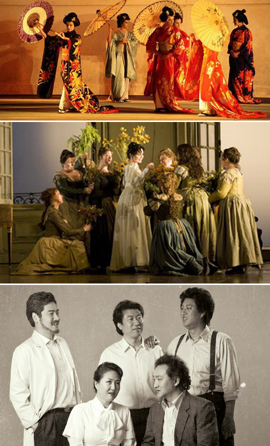 봄을 맞아 화려한 오페라 공연이 동시에 펼쳐진다. 세계적인 오페라 공연들의 향연으로 모처럼 입맛에 맞게 골라보는 재미를 누려볼 수 있게 됐다. 영국 로열오페라하우스의 프로덕션을 비롯해 이탈리아 트리에스테 베르디 극장의 내한 공연, 요하네스 슈테르트 지휘로 TIME 앙상블이 연주하는 세계적인 공연 등이 서울 시내 대형공연장 세 곳에서 펼쳐진다. 한국의 창작 오페라도 새롭게 선보인다. 한국전쟁 60주년을 한 해 앞두고 서서히 잊혀 가는 우리 민족의 비극적인 역사 6.25전쟁의 의미를 다시금 새길 수 있는 창작오페라도 기대되는 작품이다. 내로라 하는 오페라 대작들의 홍수 속에서 온 가족이 쉽게 즐길 수 있는 오페라 관전 포인트를 살펴봤다. 관객에게 쉽게 다가오는 달라진 오페라 공연의 진면목을 만끽할 수 있다. ∎ 연출가 맥비커, 배역의 극적요소 더해져…‘피가로의 결혼’ 예술의 전당이 1년에 걸쳐 리노베이션을 마치고 오페라극장의 재개관을 축하하기 위해 3월 6일부터 14일까지 모차르트의 ‘피가로의 결혼’을 무대에 올린다. 2006년 영국 로열오페라하우스가 모차르트 탄생 250주년을 기념해 제작한 신작으로 현재 세계에서 가장 주목받는 오페라 연출가 데이비드 맥비커의 연출과 클래식한 무대로 준비됐다. 소프라노 신영옥이 수잔나 역을 맡고 바리톤 윤형과 카운터테너 이동규가 케루비노 역을, 바리톤 조르지오 카오루로 등 세계적인 오페라극장 무대에서 활약하고 있는 성악가들이 대거 출연한다. 오페라 오케스트라 지휘로 세계무대에 이름을 알린 지휘자 이온 마린이 가세해 모차르트 음악의 환상적인 앙상블과 ‘피가로의 결혼’이 가진 화해와 희망이라는 메시지를 전한다. 이번 무대에 가장 큰 특징은 모차르트가 남긴 당대 성 풍속과 인간 내면의 본질을 적나라하게 보여주는 무대라는 점이다. 배역간의 극적인 요소가 어떻게 만들어지느냐가 관건인 작품으로 연출가 맥비커의 장점을 극대화해 캐릭터의 강한 이미지를 부각시킬 것으로 예상된다. ∎ 서양인의 시각으로 동양인의 사랑을 묘사… ‘나비부인’ 우리에게 익숙한 푸치니의 대표 오페라 ‘나비부인’이 이탈리아의 4대 극장 중 하나인 트리에스테 베르디극장과의 문화교류로 내한 공연된다. 이번 무대는 지난해 12월 서울시오페라단이 이탈리아 베르디의 ‘라 트라비아타’에서 보여준 성공적인 무대에 대한 이탈리아 오페라계의 화답으로 열린다. 오페라 종주국인 이탈리아에서 국내 오페라계에 선사하는 아주 특별한 무대다. 오페라 ‘나비부인’은 ‘카르멘’ ‘라 트라비아타’와 함께 푸치니의 3대 걸작으로 불리며 세계 오페라하우스에서도 가장 많이 올려 진 작품 중 하나다. 15세의 꽃다운 나이에 게이샤가 된 일본 여인의 지고지순한 사랑을 담았다. 이번 내한공연은 서양인의 시각으로 동양인의 사랑을 묘사하는 ‘나비부인’의 감동을 선사할 예정이다. 공연은 이탈리아 출신 줄리오 치아밧티가 연출을 맡고 로렌초 프라티니가 지휘한다. 여주인공 나비부인 역을 이탈리아 출신 소프라노 라파엘라 안젤레티가 열연하고 미군 장교 핑커턴은 테너 마리오 말라니니가 맡았다. 세종문화회관 상주 예술단인 서울시 오페라단이 이탈리아 4대극장의 하나인 트리에스테 베르디 극장 산하 오페라단을 초청해 3월 12일부터 15일까지 세종문화회관에서 오페라 '나비부인'을 선보인다. ∎ 현대적으로 재해석, 연극적 어법 가미해… ‘마술피리’ ‘마술피리’는 가족오페라로 가장 많이 관람되는 전통 오페라 레퍼토리다. 서곡을 비롯해 귀에 익숙한 아리아로 우리에게 친숙한 무대다. 게다가 이번 무대는 국립오페라단이 모차르트의 오페라 ‘마술피리’를 현대적으로 재해석한 무대 변화에 초점을 뒀다. 이 작품은 모차르트가 초연 2개월 만에 사망해 '모차르트의 마지막 오페라'로도 유명하다. 국내무대는 통영국제음악제의 홍보대사를 담당하는 한국의 전문연주단체 TIME이 앙상블로 연주하고 마이클 애시맨이 연출을 맡아 현대적인 오페라로 변화를 시도했다. 연극적 어법으로 간결하고 화려한 오페라 무대를 선보일 예정이다. 연출가 애시맨은 기존과 달리 현대적인 무대로 연출할 계획임을 밝히기도 해 달라진 '마술피리'의 무대를 기대케 한다. 밤의 여왕으로 소프라노 카타르지나 도달스카가 열연하고 오하네스 슈테르트 지휘로 TIME 앙상블과 국립합창단이 함께 무대에 선다. 총 7회 공연 중 4회는 독일어 대사로, 3회는 한국어로 들려주고 아리아는 모두 독일어로 부른다. ∎ 비극적인 한국역사를 조망하는…국내창작오페라 ‘내 잔이 넘치나이다’ 1980년 베스트셀러였던 작가 정연희의 동명소설을 원작으로 실존 인물 맹의순의 감동적인 실화를 모티브로 오페라가 제작됐다. 한국전쟁 60주년을 앞두고 비극적인 역사인 6.25전쟁을 조망하기 위한 작품이다. 1950년 27세 전도사 맹의순이 인민국으로 오인 받아 거제도 포로수용소로 옮겨지고 포로 환자를 돌보다 죽음을 맞는 이야기로 그의 나이 27을 의미해 제목도 'perfect 27'이다. 3월 24일부터 27일까지 성남아트센터 오페라하우스에서 초연되는 이번 작품은 합창