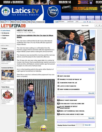 위건 애슬레틱의 스티브 브루스 감독이 공식 입단식을 치른 조원희를 극찬하고 나섰다. 위건의 스티브 브루스 감독은 13일(이하 한국시간) 구단 홈페이지를 통해 "복잡한 절차를 마무리짓고 마침내 계약이 성사돼 기쁘다. 조원희를 보자마자 그가 위건에 필요한 선수란 것을 알 수 있었다. 그는 프리미어리그에 충격을 줄 수 있을 것"이라며 큰 기대감을 드러냈다. 이어 "조원희는 빠르고 강하며 정신력도 대단하다. 수비적인 성향이 짙지만 결정적인 옵션이 될 것이며 팀에 주전 경쟁구도를 만들어줄 것이다. 영어를 배우려는 의지 역시 높이 사고 싶다”며 극찬을 아끼지 않았다. 이에 대해 조원희는 "프리미어리그는 모든 선수들이 뛰고 싶어 하는 무대다. 이곳에서 플레이를 펼칠 수 있는 것은 나와 가족에게 큰 영광”이라고 말한 뒤 "위건은 환상적이며 팀에 많은 기여를 하고 싶다. 나의 영입이 탁월한 선택임을 증명하고 싶다"며 앞으로 포부에 대해서 밝혔다. 조원희는 오는 15일 열릴 선더랜드 원정 경기서 데뷔할 예정이다. 주전 미드필더 리 캐터몰이 출장정지를 당했고 마이클 브라운과 벤 왓슨이 만족스러운 활약을 보여주고 있지 못한 상황이어서 출전 가능성이 높은 상황이다. parkrin@osen.co.kr 조원희가 위건 입단식을 치른 뒤 브루스 감독과 유니폼을 들어보이는 모습과 훈련 장면이 실린 위건 홈페이지.