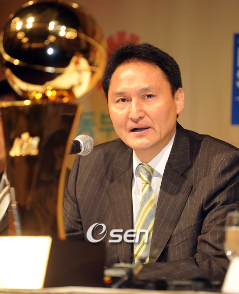 '2008-2009 동부프로미 프로농구' 플레이오프 미디어데이 기자회견이 25일 오후 서울 프라자 호텔에서 열렸다. 사상 처음으로 열린 이날 행사에는 오는 27일 시작되는 플레이오프에 진출한 모비스 동부 KCC 삼성 LG 전자랜드 감독과 선수 대표가 참석해 출사표와 각오 등을 밝혔다. 삼성 안준호 감독이 각오를 밝히고 있다./윤민호 기자ymh@osen.co.kr