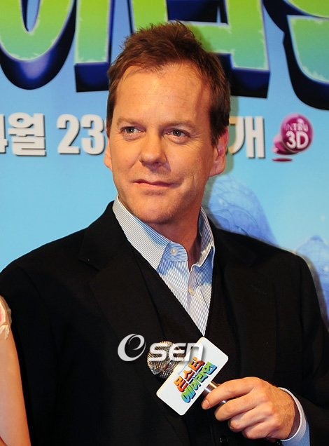 '몬스터 VS 에이리언' 언론 시사회가 26일 오전 서울 용산구 용산CGV에서 열렸다. 한국어 더빙판 주인공으로 참여한 배우 한예슬과 '워 딜러 장군' 역의 키퍼 서덜랜드, 드림웍스 CEO인 제프리 카젠버그가 무대인사를 가졌다.‘몬스터 VS 에이리언’은 거대한 몬스터들이 국가 수용소에 갇히게 되면서 벌어지는 해프닝을 그린 영화로 미국에서 3월 27일 개봉할 예정이다. 키퍼 서덜랜드가 무대인사를 하고 있다./윤민호 기자ymh@osen.cokr
