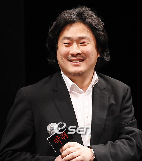 박찬욱 감독의 신작 영화 '박쥐' 제작보고회가 31일 서울 압구정 CGV에서 열렸다. 이 자리에는 박찬욱 감독과 주연배우 송강호 김옥빈이 참석했다. 내달 30일 개봉예정인 이 영화는 정체불명의 피를 수혈 받고 뱀파이어가 된 신부(송강호)가 친구의 아내(김옥빈)와 치명적인 사랑에 빠져 남편을 살해하자는 그녀의 제안을 받아들이면서 예상치 못한 상황에 휘말리게 되는 내용을 담고 있다. 박찬욱 감독이 기자회견 중 환하게 미소짓고 있다./민경훈 기자 rumi@osen.co.kr