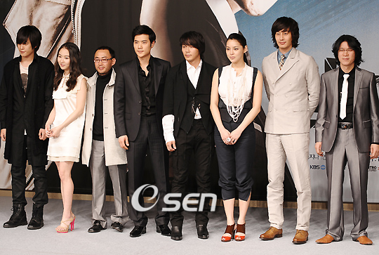 KBS 2TV 새 월화드라마 '남자 이야기'의 제작 발표회가 31일 오후 서울 광장동 쉐라톤 워커힐 무궁화 홀에서 열렸다. 이 자리에는 윤성식 연출과 배우 박용하 김강우 박시연 이필립 김뢰하 박기웅 한여운 김강우가 참석했고 다함께 포토타임을 갖고 있다. 내 달 6일 첫방송 예정인 이 드라마는 돈이 전부인 세상에 의해 버려진 한 남자가 세상을 향해 선전포고를 하는 내용을 담고 있다./민경훈 기자 rumi@osen.co.kr