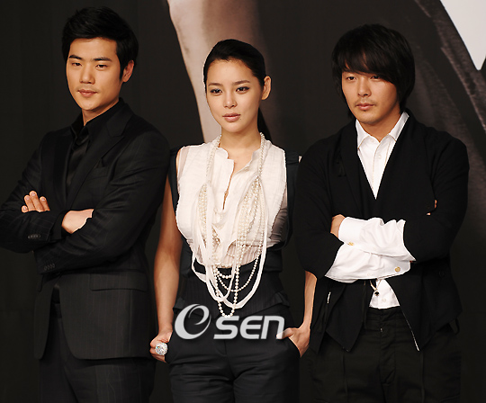 KBS 2TV 새 월화드라마 '남자 이야기'의 제작 발표회가 31일 오후 서울 광장동 쉐라톤 워커힐 무궁화 홀에서 열렸다. 이 자리에는 윤성식 연출과 배우 박용하 김강우 박시연 이필립 김뢰하 박기웅 한여운 김강우가 참석했다. 내 달 6일 첫방송 예정인 이 드라마는 돈이 전부인 세상에 의해 버려진 한 남자가 세상을 향해 선전포고를 하는 내용을 담고 있다. 기자회견을 마치고 김강우 박시연 박용하가 포토타임을 갖고 있다./민경훈 기자 rumi@osen.co.kr
