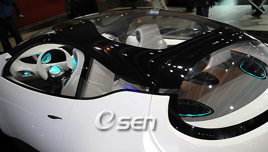 ‘2009 서울모터쇼’의 프레스 데이 행사가 2일 경기도 일산 킨텍스에서 열렸다. ‘아름다운 기술, 놀라운 디자인(Beautiful Technology, Wonderful Design)’이라는 슬로건을 내건 제7회 서울모터쇼는 국내 125개, 해외 33개 등 총 9개국, 158개 업체가 참가했다. 이번 모터쇼에는 세계 최초 전시 9대 등 총 23대의 신차와 컨셉트카 14대 등 최첨단 차량들이 대거 선보이며 오는 12일까지 열린다. 르노 삼성이 독자 개발한 'eMX'가 공개되고 있다./고양=민경훈 기자 rumi@osen.co.kr