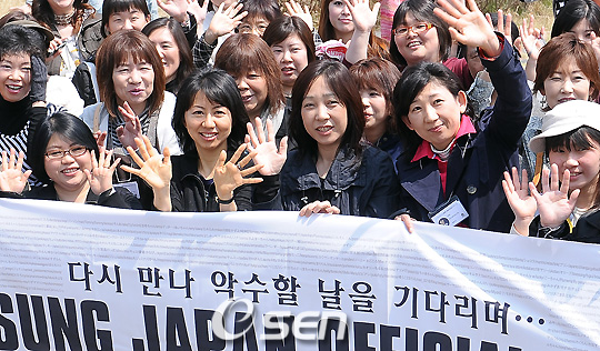 배우 조인성(28)이 6일 오후 경남 진주 공군교육사령부에 입소했다. 지난해 11월 특별전형에서 공군 군악전문화병(군악 특기병사)으로 합격 한 조인성은 6주간 기초군사훈련을 받고 공군작전사령부 군악대 군악 공연팀에서 25개월간 군복무 생활을 한다. 조인성을 보기 위해 모인 일본팬들이 현수막을 들고 기다리고 있다./진주=윤민호 기자ymh@osen.co.kr
