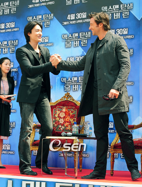 외화 '엑스맨 탄생: 울버린'의 주인공 휴 잭맨이 10일 오후 서울 충무로 한국의집에서 공식 기자회견을 가졌다. 잭맨은 이번 한국 방문에서 청계광장 레드카펫 및 핸드 프린팅 등 다양한 행사를 통해 시민들과 직접 만날 예정이다. 뿐만 아니라 서울시 홍보대사로도 위촉돼 이날 오후 2시 서울 시청 간담회장에서 이상철 정무부시장으로부터 위촉패를 받을 예정이다. 기자간담회를 마친 다니엘 헤니와 휴 잭맨이 인사를 나누고 있다./ 윤민호 기자ymh@osen.co.kr