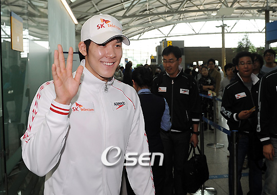 '마린 보이' 박태환(20)이 6주간의 미국 2차 전지훈련을 위해 16일 오후 인천공항을 통해 미국 LA USC(남가주대학교)로 떠난다. 박태환은 USC 수영팀의 데이브 살로 감독의 지도로 7월 로마에서 열리는 2009 세계선수권대회에서 자유형 400m 우승과 1500m 기록 단축을 목표로 한다. 박태환이 인사를 하며 출국장으로 들어서고 있다./인천공항=윤민호 기자ymh@osen.co.kr
